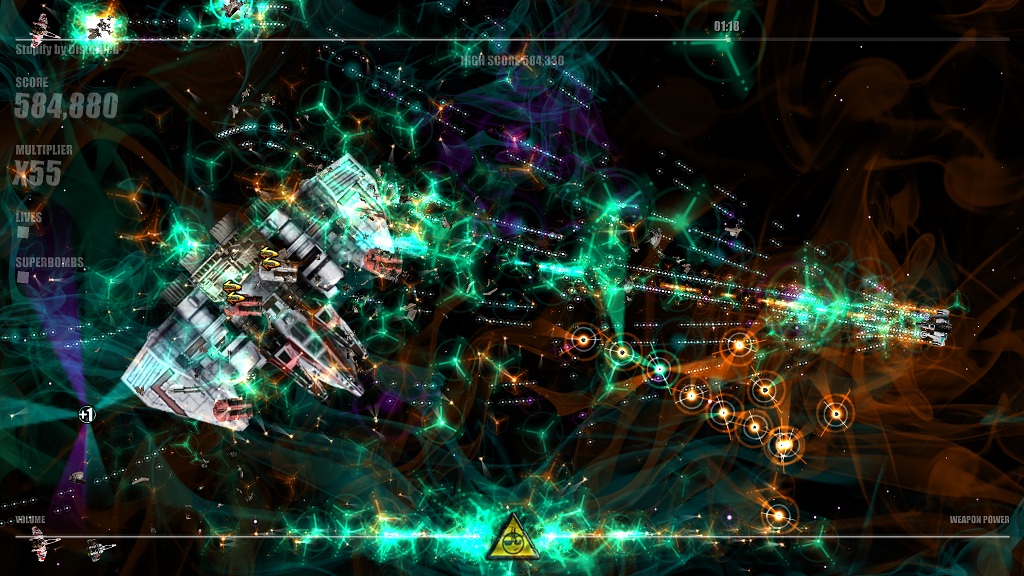 Once I found the right music and started falling into that aforementioned zen state, I also fell in love with Beat Hazard. It can be a bit of a pain, it doesn’t always work, and it doesn’t hold a candle to Geometry Wars, but it still manages to be brilliant. There are moments in games where everything comes together – visuals, sound, and gameplay in a perfect harmony that gives you chills. These are normally rare moments, but they come so frequently while playing Beat Hazard that I can’t help giving it my utmost recommendation.
