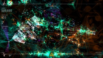 Thankfully, Beat Hazard includes a couple elements that not only keep things interesting, but also more closely tie the music in with the gameplay. For one, collecting power-ups increases your ship’s strength, but more important it increases the volume of the music. If you die you drop your items and the volume drops to a muted, disappointing level. It encourages staying alive not through a high score or progress, but through aesthetic pleasure. The game is more fun when you’re doing well so you want to do well at any cost.