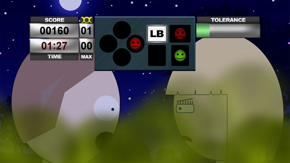 Then there’s the gameplay itself. I expected the typical button-stomping QTE/Simon game. After all, those are a dime a dozen on XBLIG, and they’re all terrible. What this game does is actually a bit more inspired, asking you to hold down several buttons at once. It’s sort of like Twister for your hands.